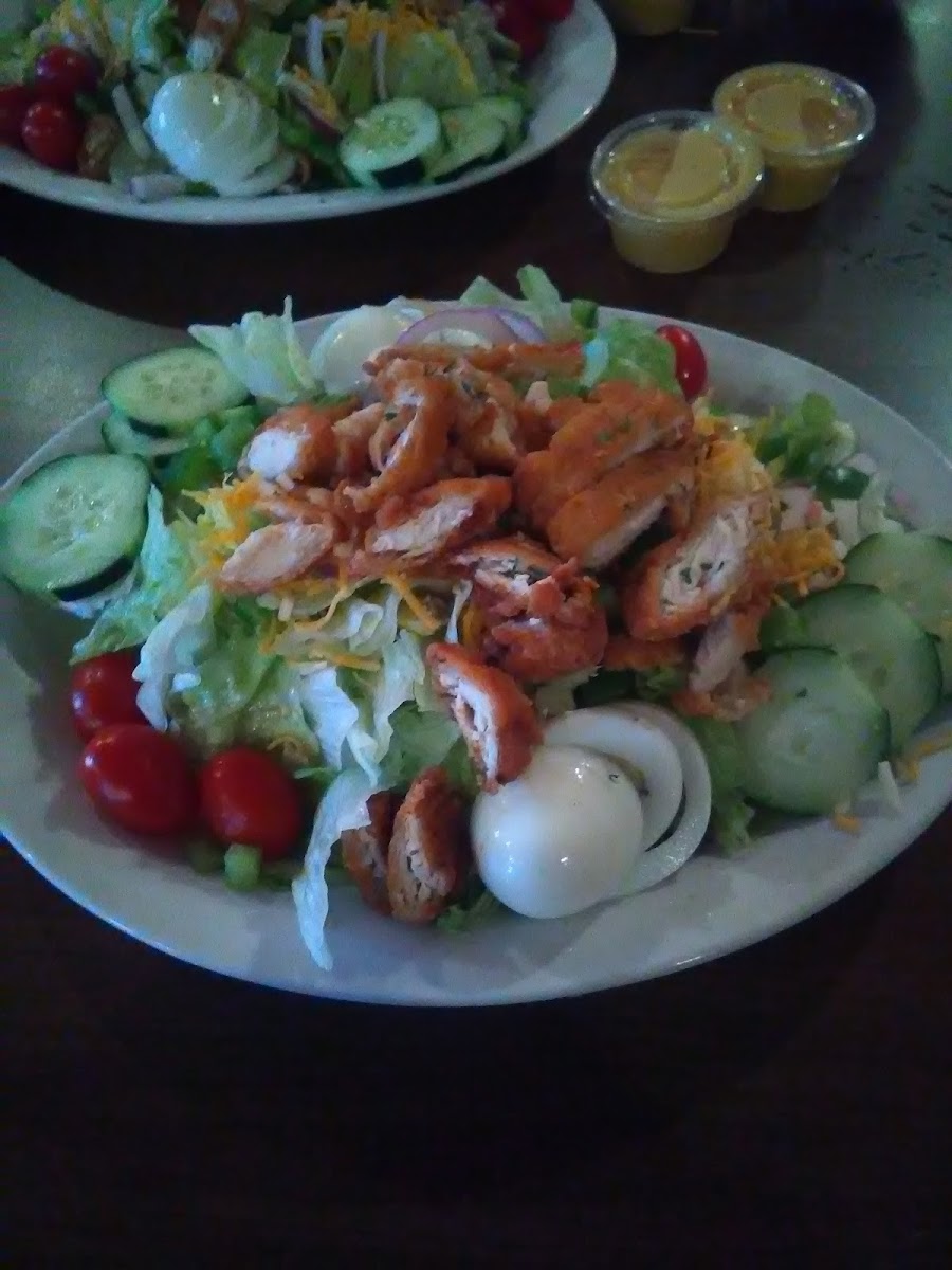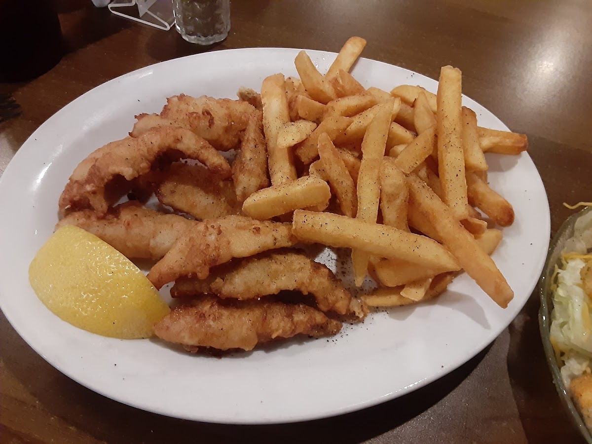 Food was really good, service was excellent, atmosphere was questionable. We are a 70 year old couple and eat here at least once a week. We happened to be the only customers in the place for an early dinner. It started quiet then AC/DC came on and it was so loud we almost walked out, just stupid. Think when you have an empty restaurant with only two customers, what do you think THEY want to hear when they spend THEIR MONEY???? Just think!!!! Again, food is good, priced right, correct amounts, service great.